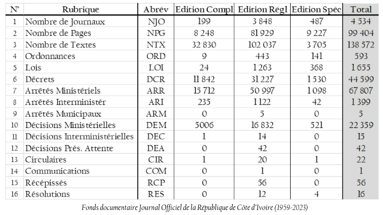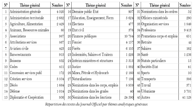 Le volume considérable que représente le fonds documentaire du Journal Officiel (plus de 4500 numéros), l’importance indéniable des textes qu’il renferme (environ 140 000) et la fréquence des consultations auxquelles il est soumis quotidiennement (estimées à 5 000), le rendent incontournable aussi bien pour les acteurs administratifs et politiques, que pour tous ceux qui aspirent agir sur le réel et sur des bases administratives et juridiques légales, comme les professionnels du droit.